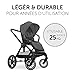 Maniobrable: gracias a su ligero chasis de aluminio, ruedas delanteras giratorias y bloqueables y grandes ruedas traseras, la silla de paseo ligera gemelar es fácil de llevar.