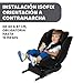 ISOFIX: De 40 a 105 cm: Se monta con los conectores ISOFIX & Top Tether; el bebé queda sujeto con el cinturón de 5 puntos de la silla; a partir de 100 cm, el niño queda sujeto con el cinturón de 3 puntos del coche