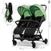 Silla de Paseo Gemelar DOUBLE HENRY – Reclinable y Plegable, para Gemelos o Hermanos desde Nacimiento hasta 15 kg, Capota UV, Freno y Cesta – Verde Asalvo