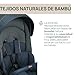 Texto naturales de bambu: la zona del reposacabezas, en contacto con la cara del niño, está fabricada en tela natural de bambú; el bambú es un material transpirable que permite absorber la humedad corporal del niño; gracias a su suavidad, es un material muy adecuado para estar en contacto con la piel delicada del niño