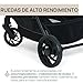 RUEDAS XL: Las 3 ruedas XL antipinchazos del carrito están equipadas con amortiguadores ajustables en dos posiciones para adaptarse a cualquier terreno y asegurar la estabilidad y el fácil manejo del cochecito.