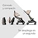 Carrito compacto con asiento ergonómico: Asiento espacioso y confortable que se reclina completamente o se mantiene erguido, con reposapiés ajustable con una sola mano para mayor comodidad