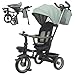 Twinly Triciclo Evolutivo Bebé Plegable 1-5 Años con Asiento Reclinable y Reversible – Acompaña el crecimiento del bebé, Freno y cinturón seguro de 5 puntos y barra de protección SAMI (Dark Green)